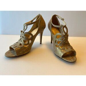 Kate Spade Gold Crackled Leather Strappy Peep Toe Heels, Size 8.5 (US)