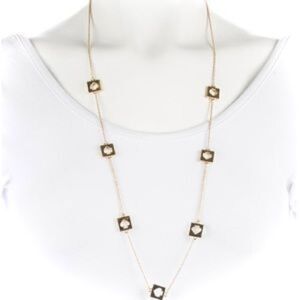 This beautiful and authentic Kate Spade Gold necklace with cut out Kate Spade logo can make an outfit pop