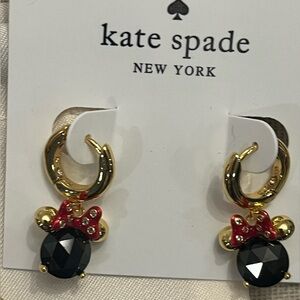 Gold toned Minnie Mouse Kate Spade earrings and matching bracelet. Features gold with black stones. Red bow accents add a playful touch. Get the Disney lover the matching Minnie set!!