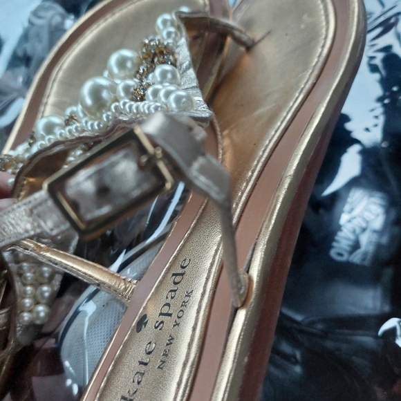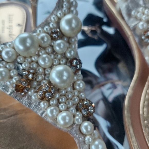 Kate Spade Gold Sandals with Pearl and Gem Embellishments Sz 7.5 Women. (D)