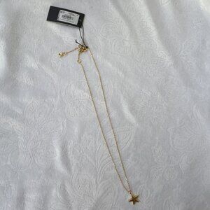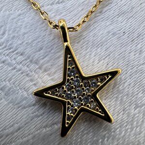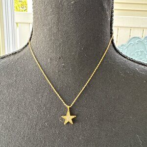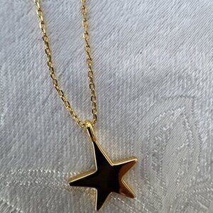 This pretty necklace is from Kate Spade New York. It features a reversible star pedant on a delicate goldtone chain. The star has CZ stones on one side and is solid on the other. New with tags.