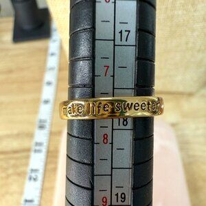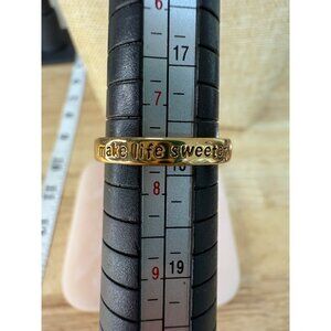 Kate Spade Gold Tone "Make Life Sweeter" Engraved Ring Size 7.5 Idiom