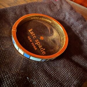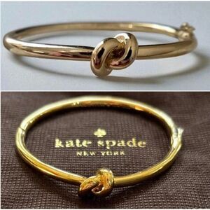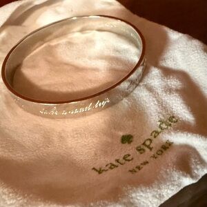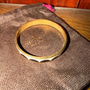 Chic Kate Spade bangle in gold with blush accents. Features a heart motif.