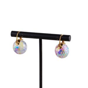 Elegant gold earrings with iridescent charm. Perfect for any occasion.