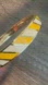 Kaye Spade ♠️ gold bangle bracelet with yellow and white chevron pattern.