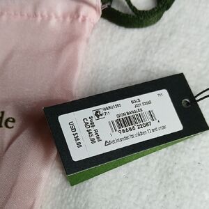 Chic gold-tone idiom bangle by Kate Spade. imprinted with "Heart of Gold". Includes a stylish pink pouch.