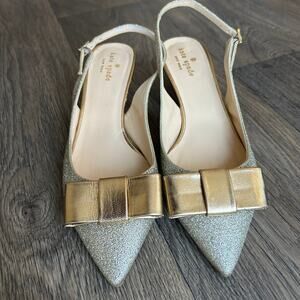 Kate Spade Golden Glitter Bow Pointed Toe Slingback Kitten Heels Size 7