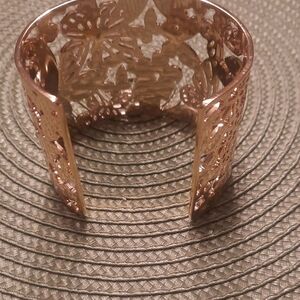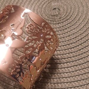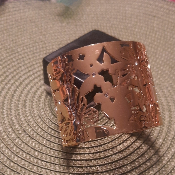 Elegant gold cuff bracelet with butterfly cutouts. it's hac a sprinkle of crystals in bracelet. goldtone. 61/2 wrist. excellent condition.