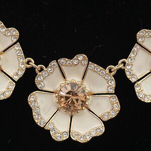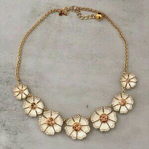 Kate Spade Graduated White Enamel Flowers Gold Clear CZ Statement Necklace 18"