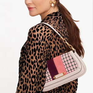 Kate Spade ♠️ Gramercy Racing Stripe Plaid Twill Small Shoulder Baguette Bag