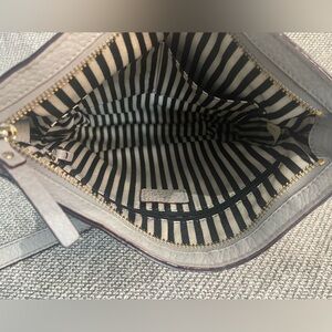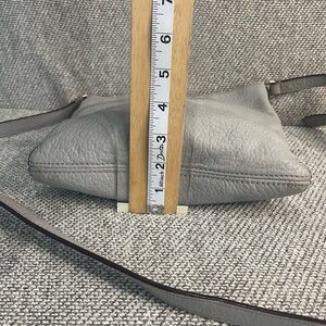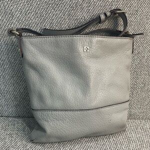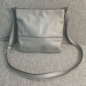 This Kate Spade crossbody bag in a sophisticated gray hue offers a sleek and modern design. Crafted with a minimalist approach, it features a clean rectangular shape and an adjustable shoulder strap for versatile wear. Its understated elegance makes it a perfect accessory for any occasion.