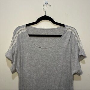 Kate Spade Gray & White Laced Sleeve Short Sleeve T-Shirt. In great preowned condition. No visible signs of wear. Feel free to make a reasonable offer through the offer button!