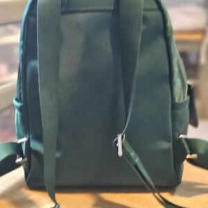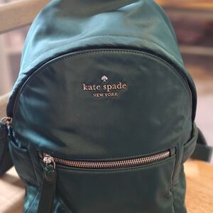 Stylish Emermal green backpack by Kate Spade. Features a front zipper pocket and adjustable straps.