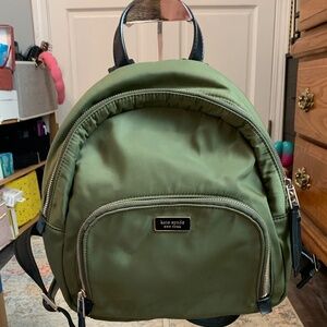 Stylish green backpack by Kate Spade. Features front zip pocket. Adjustable straps for comfort. GUC