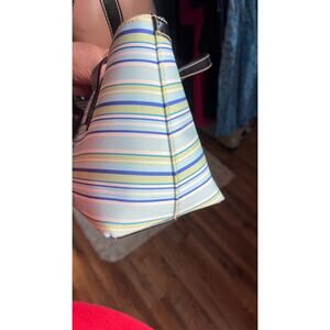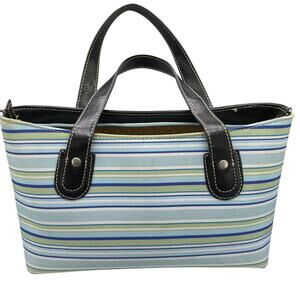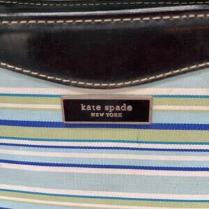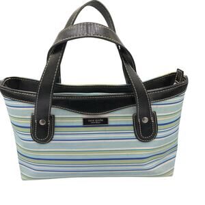 Kate Spade Green Blue Striped Small Satchel Handbag Preppy Travel Cruise Beachy