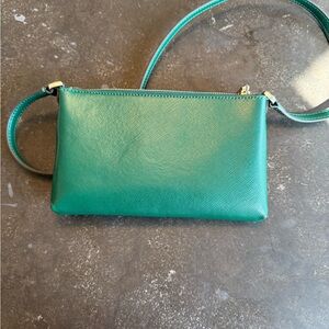 Chic and small emerald green crossbody by Kate Spade. Comes with a baby blue wallet or extra compartment I like to say. Used once. Excellent used condition.