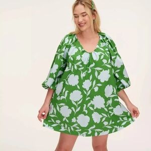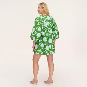Elegant mini dress with bold floral design. Features a vibrant green hue. Perfect for stylish outings.