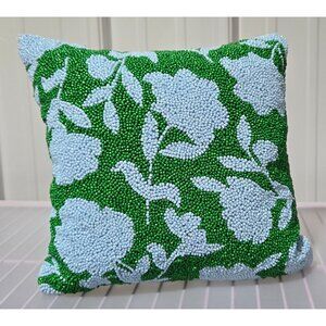 Kate Spade Green & Light Blue Rose Design 12" x 12" Beaded Accent Throw Pillow