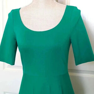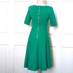 Kate Spade Green Ponte Knit Midi Short Sleeve Dress. Green 1/2 Sleeve Fit & Flare Midi Dress. 68% Viscose / 27% Polyamide / 5% Elastane. Material has stretch. Back zipper entry.
