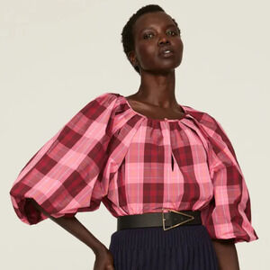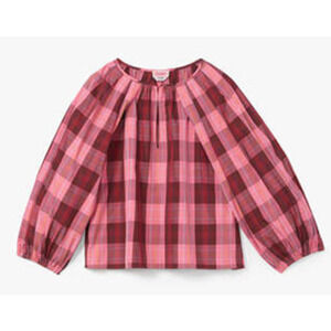 Kate Spade New York Greenhouse Plaid Top Long Sleeve Pink Red NWT Size Large