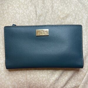 Kate Spade Greenish Blue Leather Wallet with Gold Accents