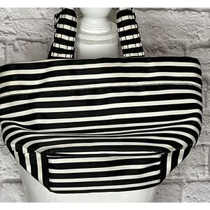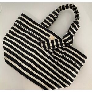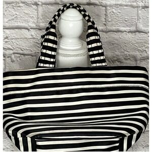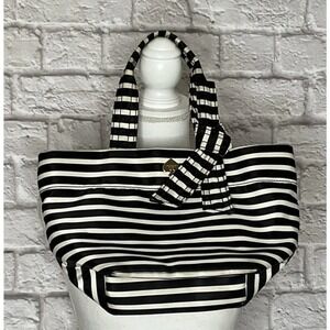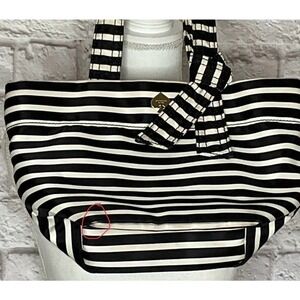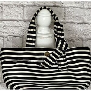 Kate Spade Hana Flatiron Handbag - Black White Stripe with Bow