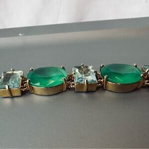 Gorgeous and fun oversized gem bracelet in light blue and alternating green in gold setting from Kate Spade.