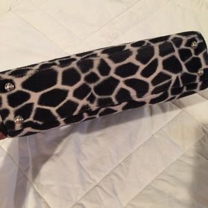 Gorgeous giraffe print Black and Tan Kate Spade handbag. This bag is small. It is vintage!Lined in dark red!