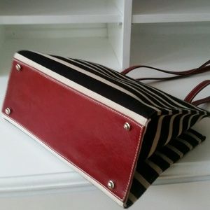Ridiculously adorable Kate Spade handbag with rich red leather shoulder handles and red leather bottom. Bag in absolutely perfect condition. Not a single mark or scratch. Bag is also VINTAGE!! Yayy!! this super cute accessory is the perfect ingredient to your chic outfit!