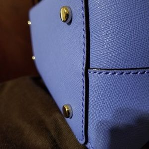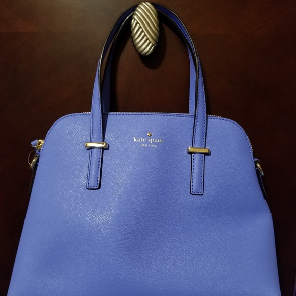 Kate Spade Cedar Street Handbag with detachable strap. The color is maise, close to periwinkle. New without tags. Approx 11" length x 9" high x 4" wide. Beautiful bag just a bit small for me. Comes with original dust bag. Pet and smoke free home.