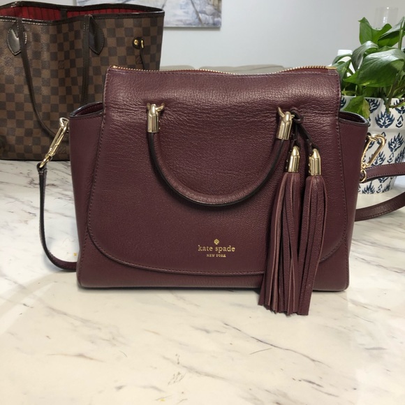 Kate Spade handbag, with strap, in a beautiful o blood color. Used once and in excellent condition. Clean and from a smoke free home.