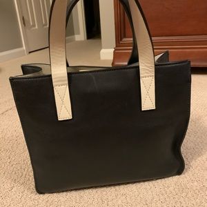 Black, cream on inside, used only twice! Soft leather. No marks or scratches. Non-smoking, animal free home.