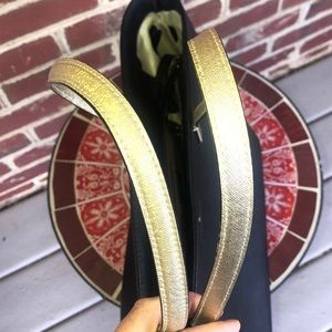 Kate Spade handbag. 10” high x 18” wide x 6” deep at base 9” straps drop Black leather with gold leather straps and cream polk a dot fabric liner. Interior zipper pocket and two slip pockets. Drop zipper closure. Only visible sign of wear is on bottom edge but only visible when bag is on its side. PLEASE REVIEW PICTURES CAREFULLY