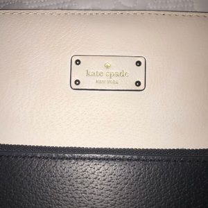 Kate Spade Handbag- large, spacious, fits a laptop and more. Great classic piece. Color black and offwhite. Used. Excellent condition. Versatile bag.