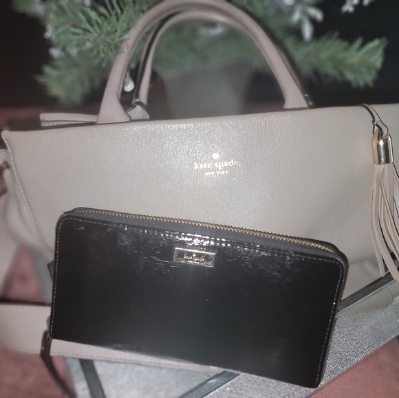 Pre loved Kate Spade Handbag Greyish with shoulder strap/ black wallet included