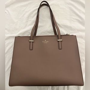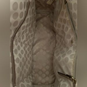 Used, like-new condition Kate Spade handbag. Gray coated leather. One small spot shown on the bottom, otherwise in perfect condition.