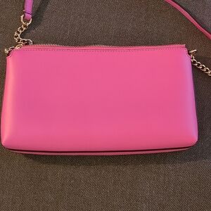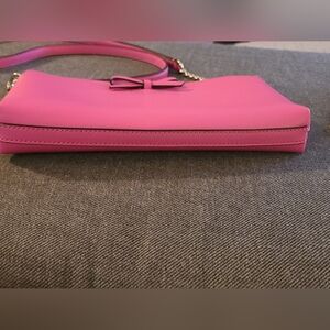 Pink leather Kate Spade handbag with a bow and gold colored metal hardware. Excellent condition, never been used. Care booklet included.