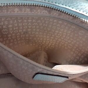 Kate Spade powder blue satchel. good condition with a couple of call outs on the outside but inside is in great shape. Comes with scarf and Kate Spade pencil pouch polka dot