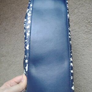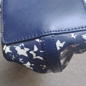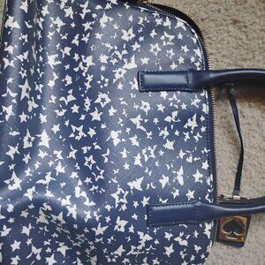 Blue with stars stamped all over it. Blue interior. Great condition. See pictures. No wear on corners. Interior on great condition. Only carried a few times.