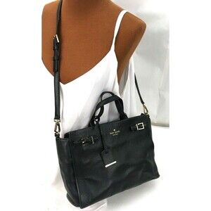 Kate Spade Handbag Black Pebbled Cow Leather Removable Strap Satchel Bag Purse