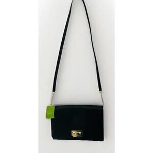Kate Spade Harwood Place Fiona Leather New Square Shoulder Crossbody Black NWT