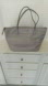 This stylish lavender/ gray tote bag features elegant stripes, perfect for any occasion. Its versatile design makes it a must-have accessory. Signs of wear on the outside as seen in pix but the inside is like new.