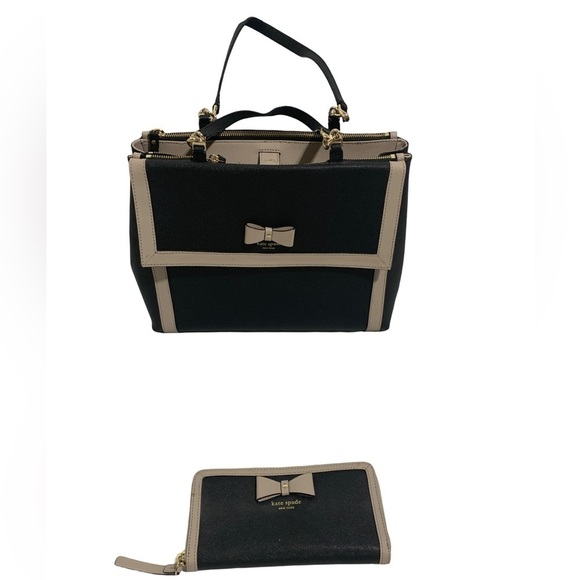 Elegant and versatile, this Kate Spade tote bag features a chic black and tan design. Perfect for any occasion, it combines style with functionality.