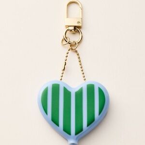This Striped Heart Coin Purse Bag Charm Keychain from kate spade new york x Target keeps your spare change or small accessories close at hand. Designed as a green-and-blue striped heart, it has a softside bag closure to hold coins, cash or other small items for quick access. A quick-locking hook attaches to luggage, bags or keyrings for convenient everyday use.