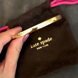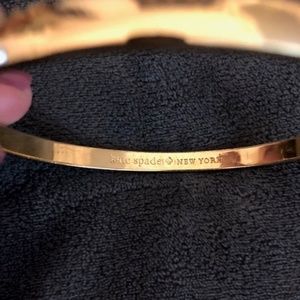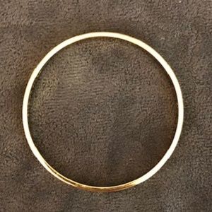 A slim, stackable bangle plated in 12-karat gold with "heart of gold" engraving inside. Slip on to wear, comes with brown jewelry bag pictured.