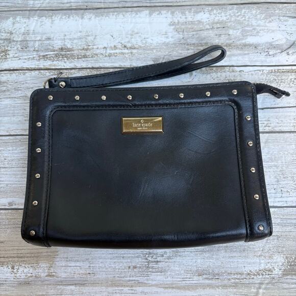 Kate Spade Helena Street Yulie Studded Wallet Wristlet Clutch Black Leather Moto