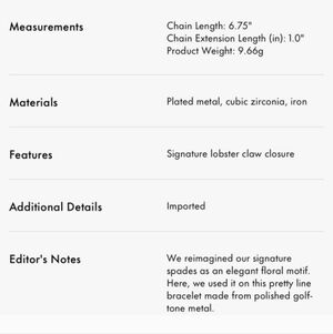 Heritage Bloom Line BraceletNWT kate spade new york Take Heart Hinge Bangle Bracelet. Plated metal, cubic zirconia,