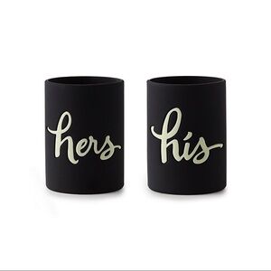Size: 3.5x3d inches. One cozy reads his, one cozy reads hers. Material - Silicone. By Kate Spade New York. Keep your drink cool on any sunny afternoon. New. Never used.