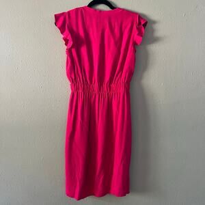 Kate Spade New York Hot Pink Flutter Sleeve Dress Size 2 V-Neck Elastic Waist Midi