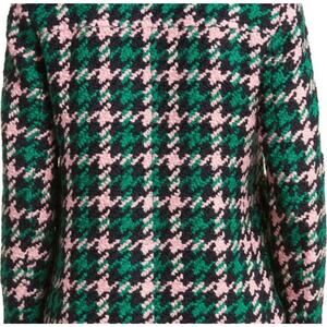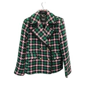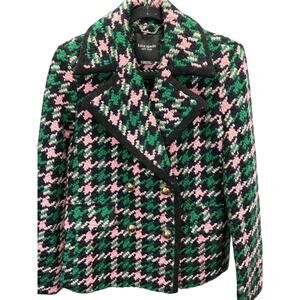Kate Spade Houndstooth Wool Blend Peacoat Pink Green Double Breasted Jacket sz M